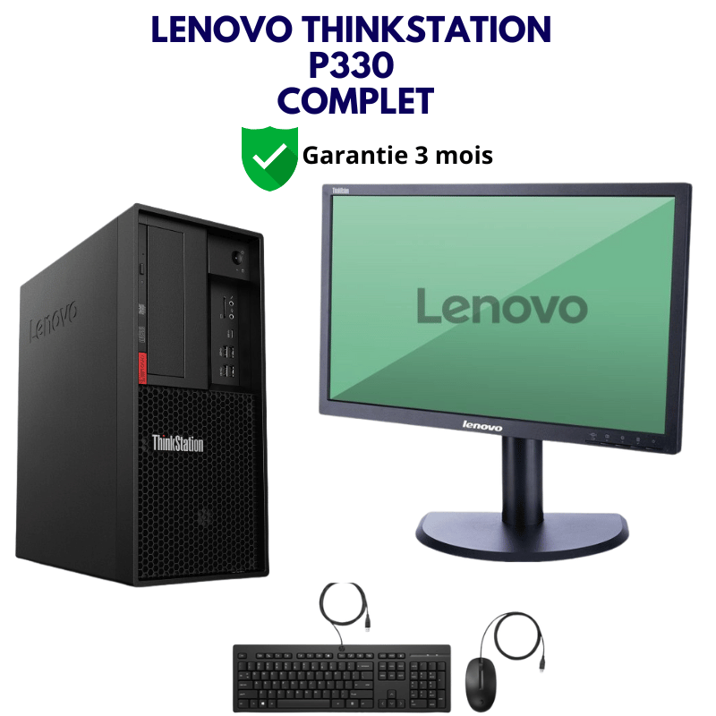 Ce pack Lenovo est livré clé en main : vous y trouverez l’unité centrale Lenovo P330, un écran Lenovo, un clavier, une souris, les câbles, sans oublier Windows 10 Pro, déjà installé. Pas besoin de montage ou de configuration compliquée, tout est pensé pour vous simplifier la vie.